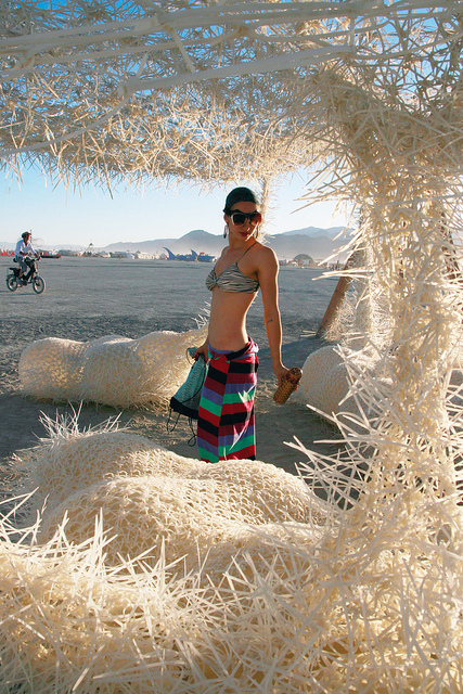 So let’s see what kind of controversy, if any, we create with this call. The best piece of art on the Playa this year, the one that inspired and touched me and still does, was the one our camp called “The Zip Tie Thing”. It’s actually called The Third Space, brought to Burning Man by swissnex. Thanks to Toburn for doing the Burners.Me investigative journalism for this. It took 52 people 16,870 hours to create this from 250,000 zip ties. They had 14 people on the Playa for 15 days, and it took 6 days of 12-hour days to get the installation finished.