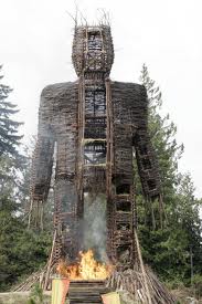 The Wicker Man movies didn’t invent the idea of ritual effigy burns, and neither did David Pinner’s novel. It’s an ancient druidic tradition, one of the earliest descriptions of the ritual is from Julius Caesar – the emperor, not the Shakespeare play. In those days, druids were so powerful that their intervention could stop two opposing armies from starting a war. The druids would punish those who did not bring them offerings, placing the culprits – and their animals – inside a giant wicker structure, and burning them to death in it so that the rest of the village could hear their screams, and thus fear the Druids. Fire was a significant technology back in those days, that’s why we still have the concept of “The Eternal Flame” today. Wicker Man burns still happen all over the world, including at San Francisco’s annual Illuminati theme camp hangout where commerce is banned and everyone goes by special names: Bohemian Grove.